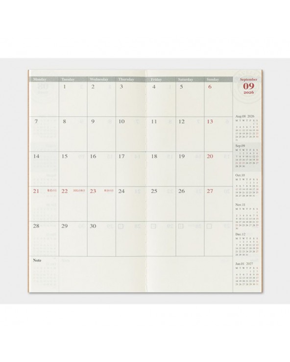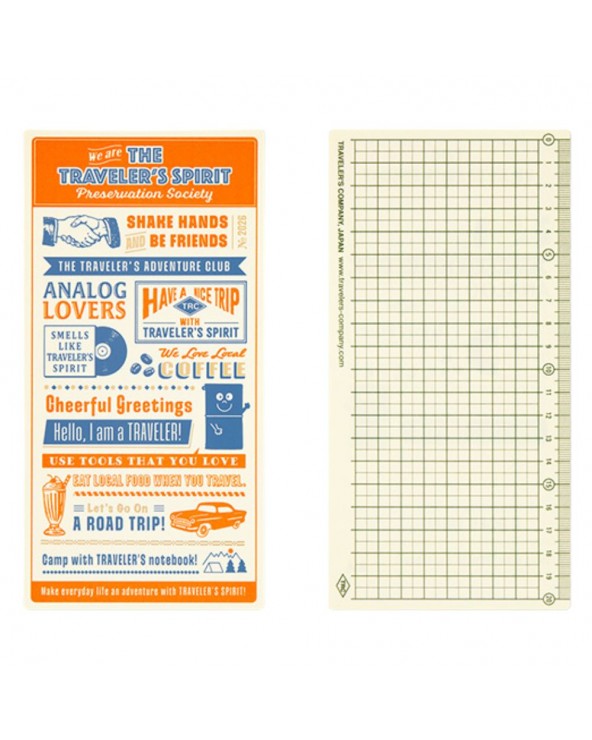 Dimensions : H210 × L110 × P3 mm (compatible avec Traveler’s Notebook Regular Size).